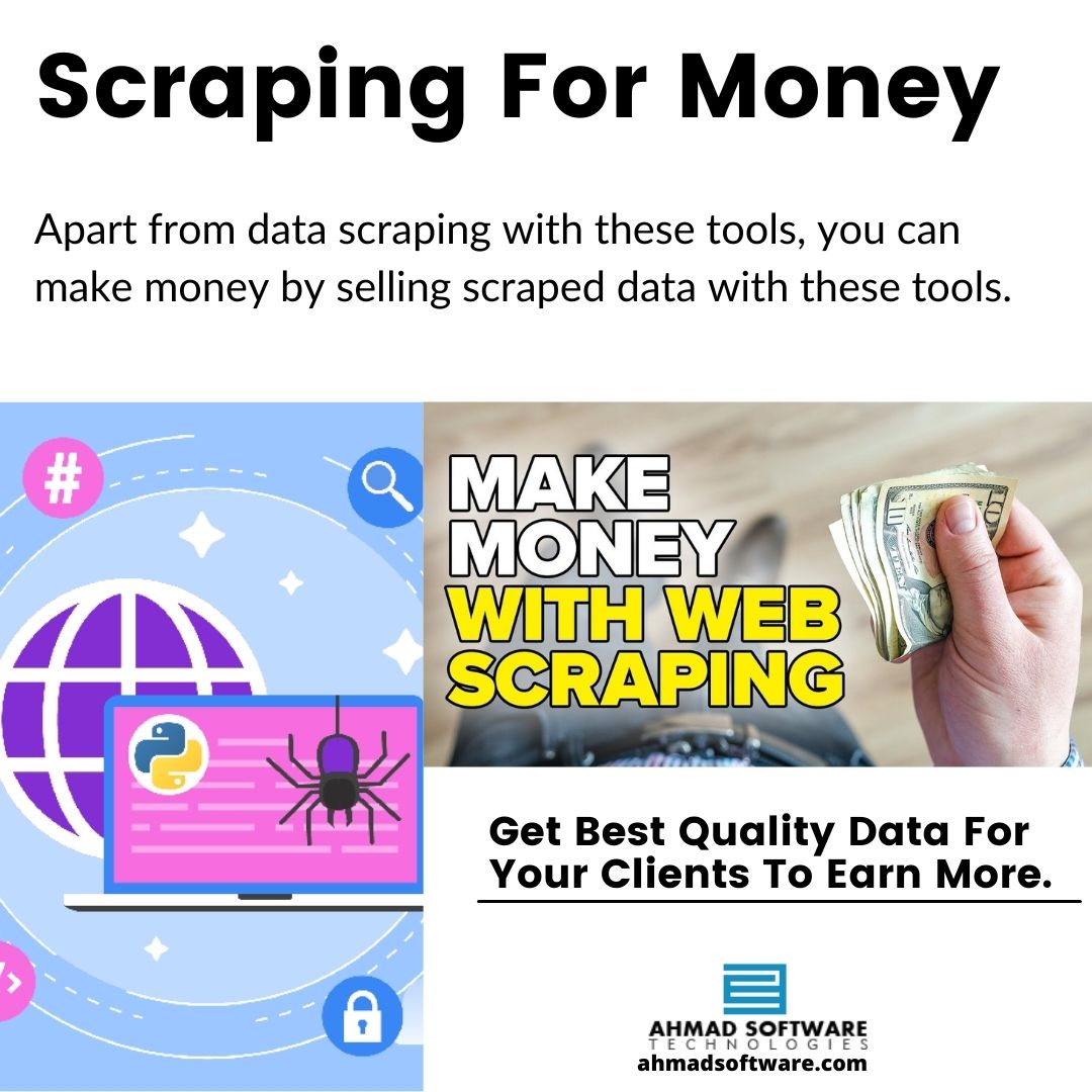 If you didn’t know what a Web Scraping tool is, well now you have an idea and we can get to the point of why you are reading this article. Money. Web Scraping is a unique way to earn money that isn’t as difficult as it sounds. There are a few methods and examples to earn money through web scraping.